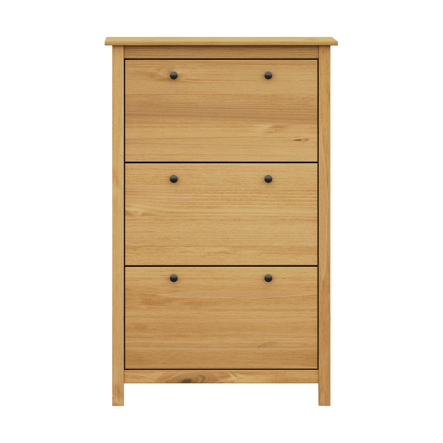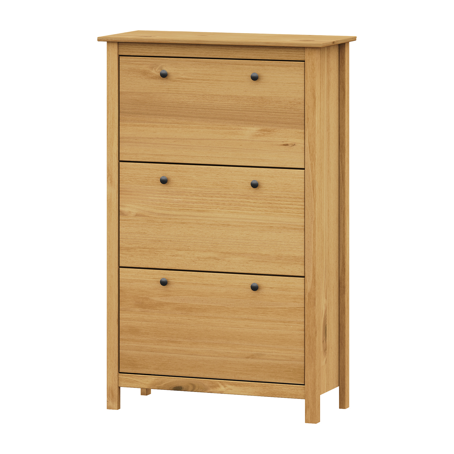 Код продукта: 8061Vmateriál masiv borovice voskovaná v medovém odstínu kovové úchytky v barevném provedení černěná mosaz 3 zásuvky s kovovými pojezdy, 3 plné dveře, 2 police maximální nosnosti uvedeny v návodu k montáži