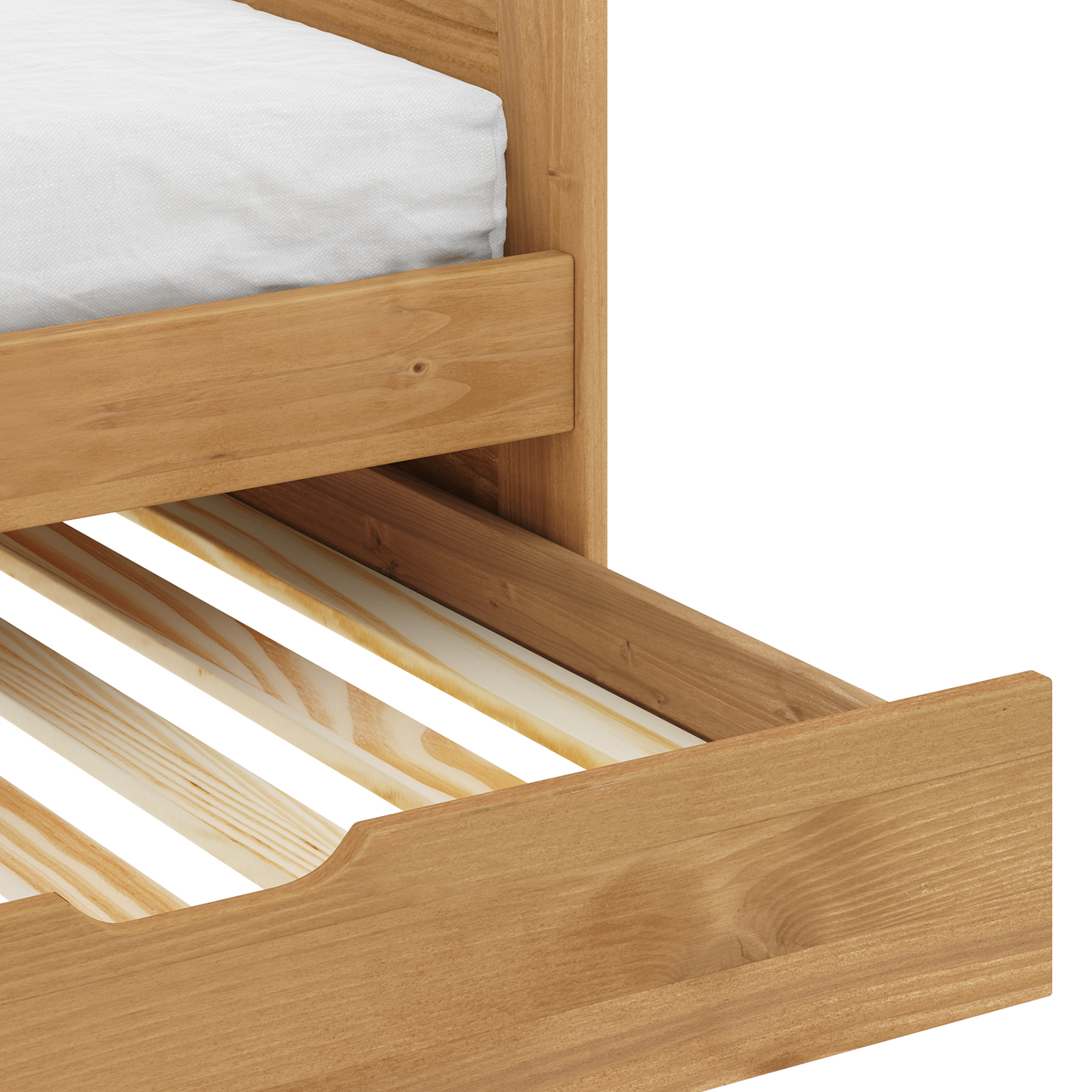 Trápí vás menší prostor v pokoji a zajisté jste již nejednou uvažovali o tom, jak vyřešíte spaní v případě nečekané návštěvy? Ideální řešení představuje jednolůžko s přistýlkou LAURA 8808V. Jednolůžko z masivního borovicového dřeva voskovaného v medovém odstínu můžete umístit mezi jakýkoliv nábytek ze stejného materiálu a stejné povrchové úpravy. V případě, že vás nebo vaše děti někdo nečekaně navštíví a bude potřebovat přenocovat, můžete velmi jednoduše situaci vyřešit. Mějte však pro tyto případy přichystanou také záložní matraci, které by neměla být vyšší, než 10 cm. Přistýlku můžete ale využívat také jako praktický úložný prostor. Jednolůžko s přistýlkou LAURA vosk 8808V tak bude vám či vašim dětem sloužit po řadu let. Doplněním o čalouněné válce nebo spoustou polštářků získáte velký sedací prostor například na chatě.