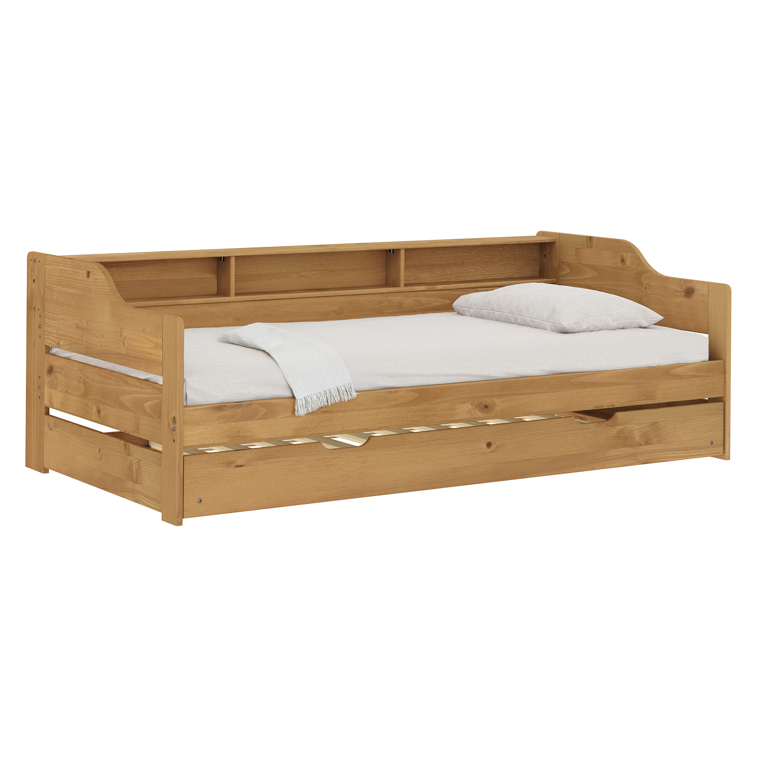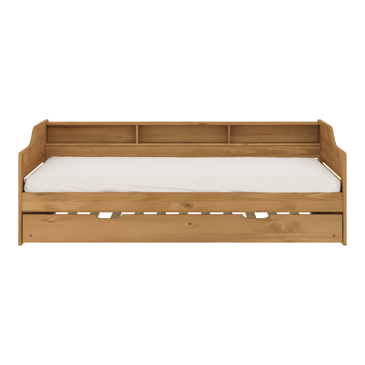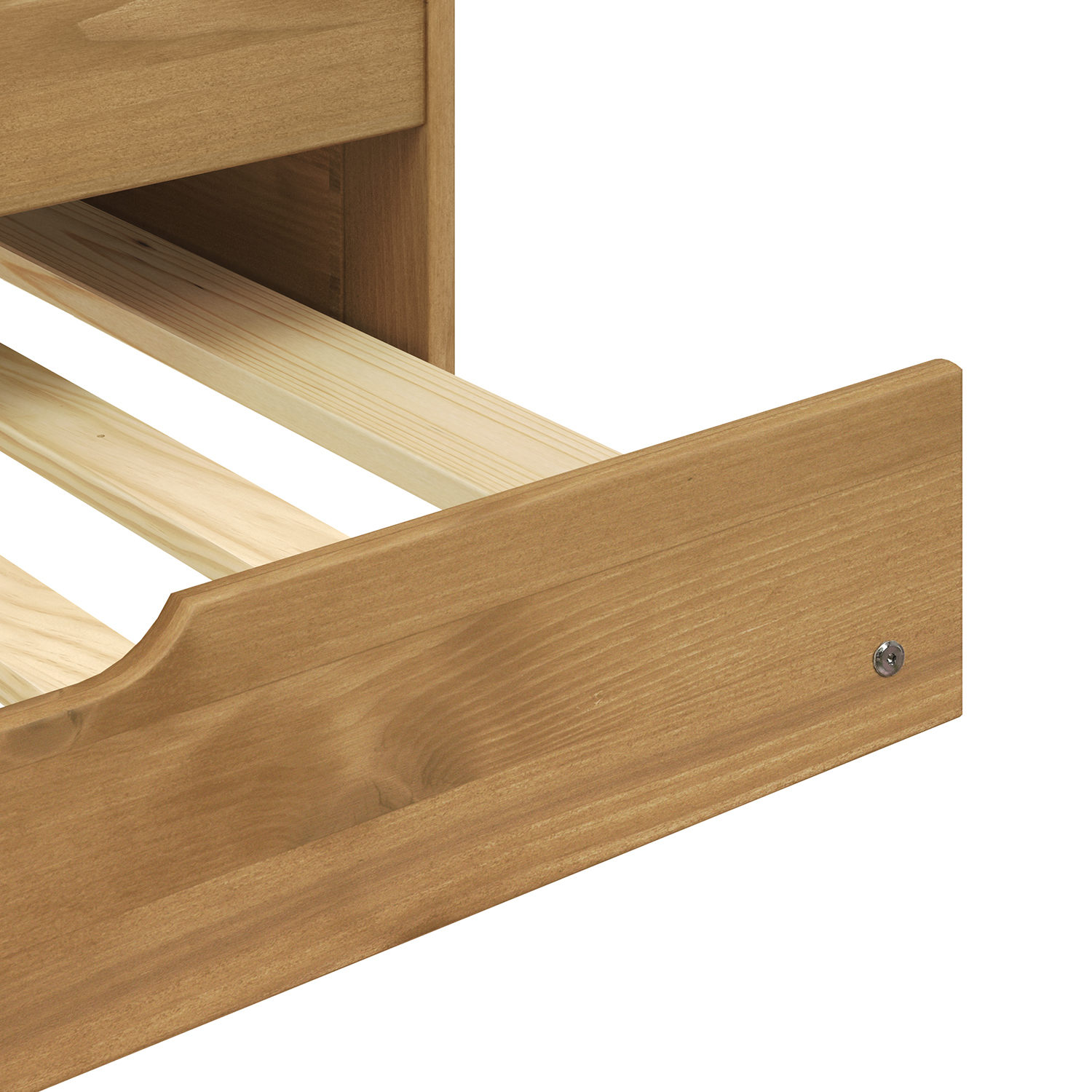 Jednolůžko LILI s voskovaným povrchem nabízí spojení kvality, přirozenosti a praktického využití. Je vyrobeno z masivu, což zajišťuje pevnost, stabilitu a dlouhou životnost. Voskovaná úprava povrchu zvýrazňuje kresbu dřeva a dává mu teplý a autentický vzhled, který okamžitě zútulní prostor. Tento vosk zároveň chrání dřevo a usnadňuje jeho údržbu bez ztráty přirozeného dojmu. Hlavní předností tohoto lůžka je integrovaná výsuvná část sloužící jako přistýlka. Jednoduše se vysune a okamžitě poskytuje druhé plnohodnotné lůžko. Přistýlka je chytrým řešením pro hosty, děti nebo situace, kdy potřebujete rychlé přizpůsobení prostoru. Po použití se elegantně zasune zpět a nenaruší vzhled místnosti ani klidný řád.
