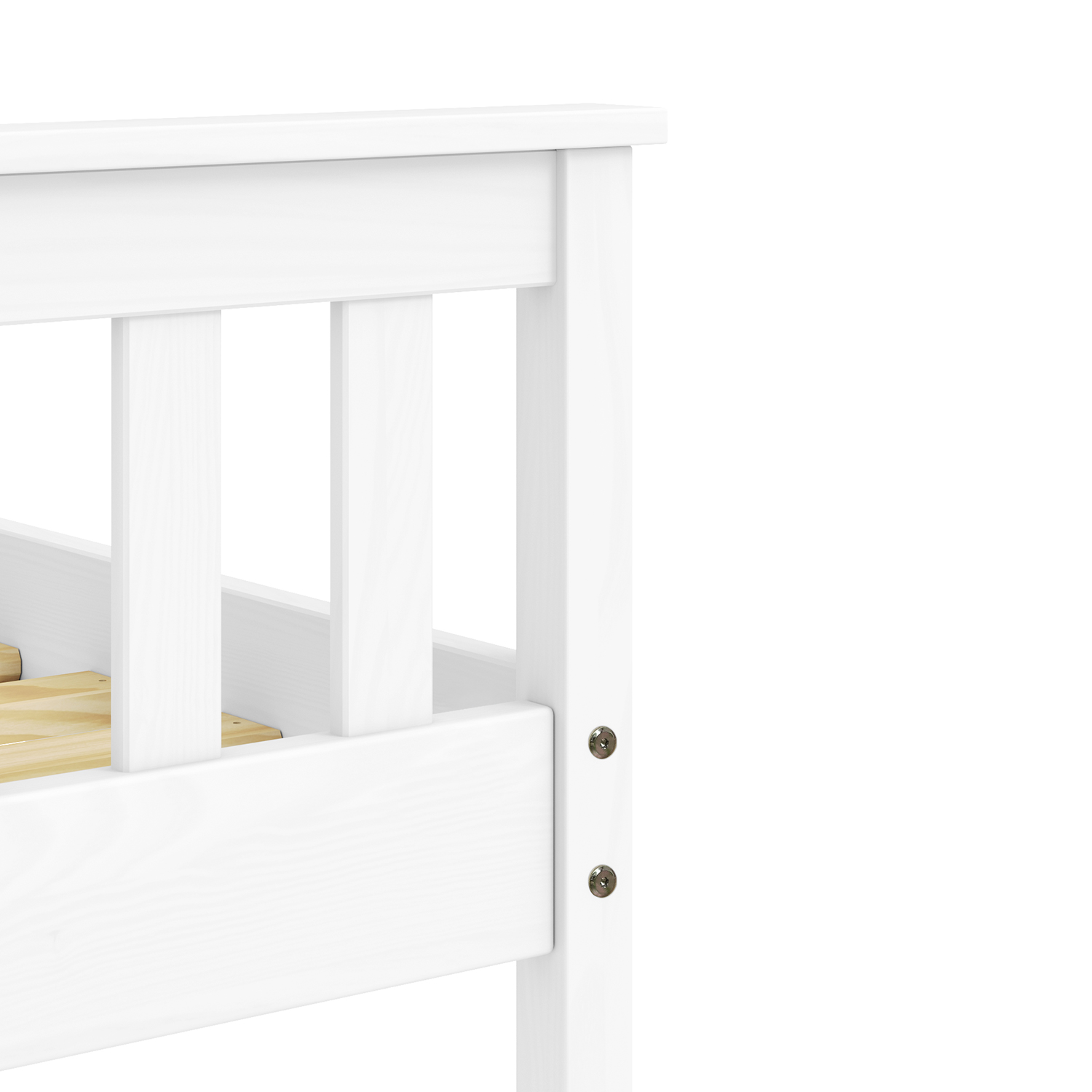 Код продукта: 8072BKматериал массив сосны, белый лак высота лба 80 см, высота сиденья 38 см, цена без решетки и матраса минимальная рекомендуемая высота матраса 15 см рекомендуемый размер матраса 90 × 200 см и решетка R1 или R5 рекомендуемая нагрузка до 120 кг