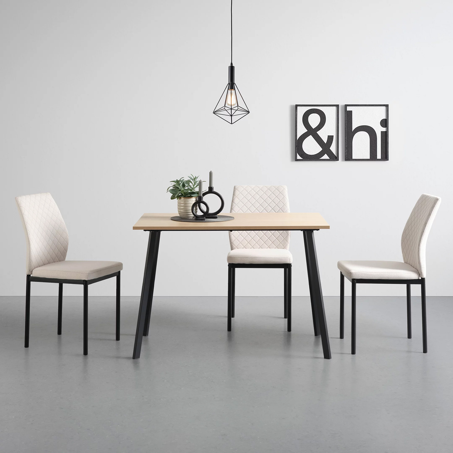Jídelní stůl Bergen v dekoru dub je ideální volbou pro každého, kdo hledá spojení elegance, kvality a praktičnosti v jednom kusu nábytku. Svým jednoduchým, ale promyšleným designem dokonale zapadne do moderního i klasicky laděného interiéru. Povrch v dekoru dubu působí přirozeně a hřejivě, takže snadno navodí příjemnou atmosféru domova. Stůl má rozměr 120 × 80 cm, což z něj činí ideální variantu pro menší jídelny nebo kuchyně, kde se klade důraz na funkčnost a estetiku. Stolní deska je odolná, pevná a snadno se udržuje. Je navržena tak, aby bez problémů zvládla každodenní používání, a přitom si zachovala svůj krásný vzhled po dlouhou dobu. Kovová podnož dodává stolu stabilitu a vytváří zajímavý kontrast s přírodním dekorem desky. Kombinace kovu a dřeva působí moderně a přirozeně zároveň, což činí z tohoto stolu výrazný prvek každého interiéru. Stůl Bergen je ideálním místem pro každodenní rodinné stolování i večerní posezení s přáteli. Díky svému tvaru a velikosti nabízí pohodlí pro čtyři osoby, aniž by zabíral příliš prostoru. Jeho nadčasový vzhled se snadno kombinuje s různými typy židlí, ať už v podobném odstínu dřeva, nebo s moderní čalouněnou variantou. Jídelní stůl Bergen v dekoru dub přináší do vašeho domova eleganci, klid a harmonii. Je to kus nábytku, který spojuje praktičnost s estetikou a vytváří ideální místo pro společné chvíle.