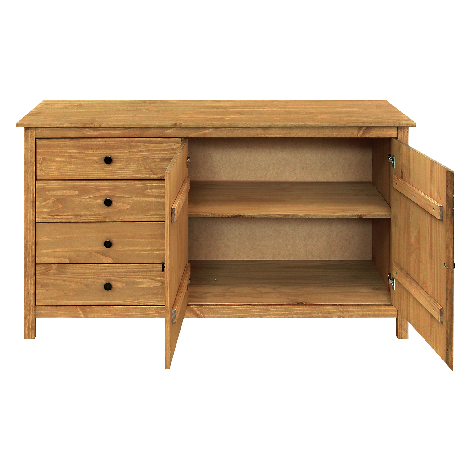 4 выдвижных ящика с металлическими полозьями, 2 массивные дверцы, 1 полка