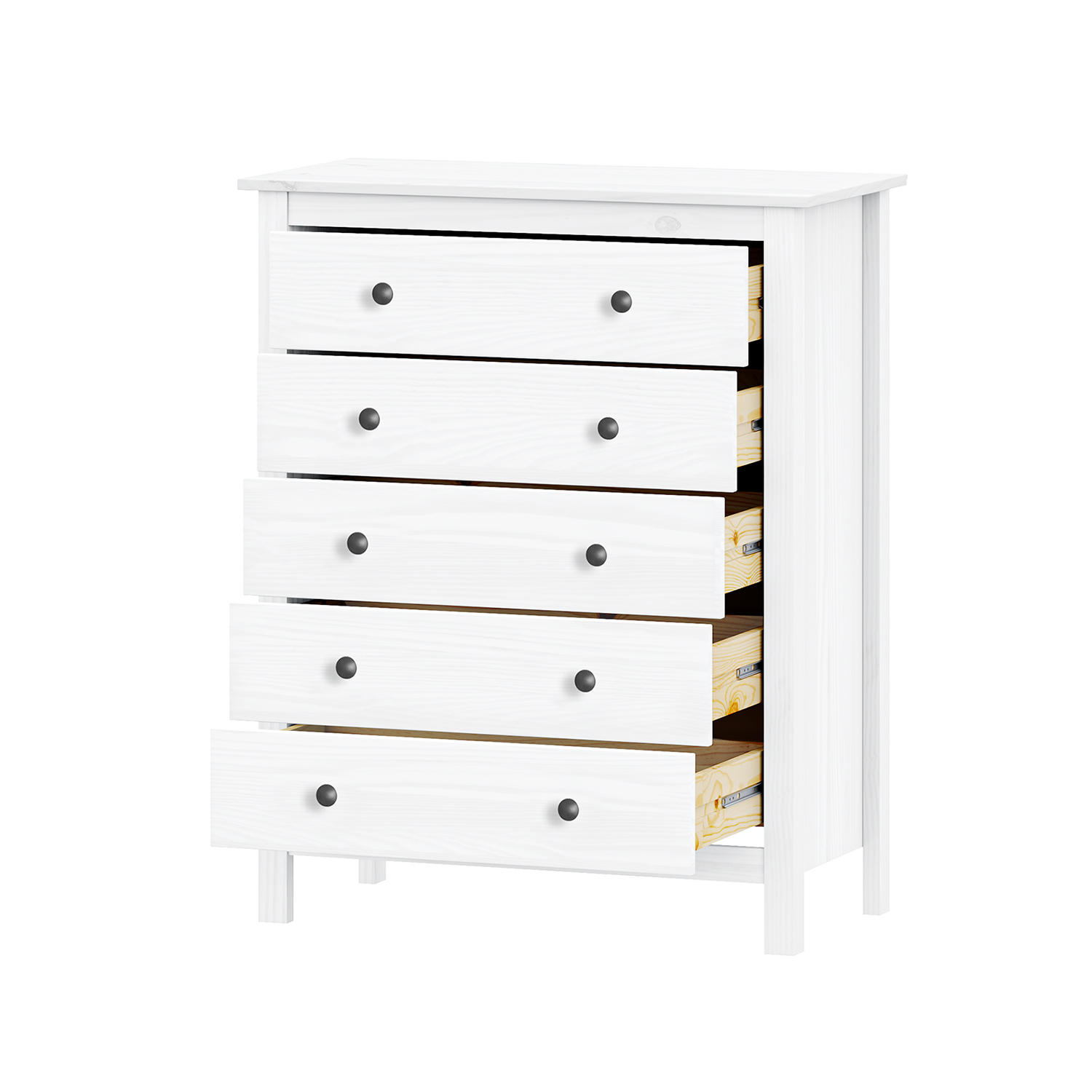 Код продукта: 9132BKМатериал - массив сосны, цвет - белый лак металлические ручки шесть выдвижных ящиков с металлическими полозьями размеры ящиков (в/ш/г) 52 × 33 × 19 см
