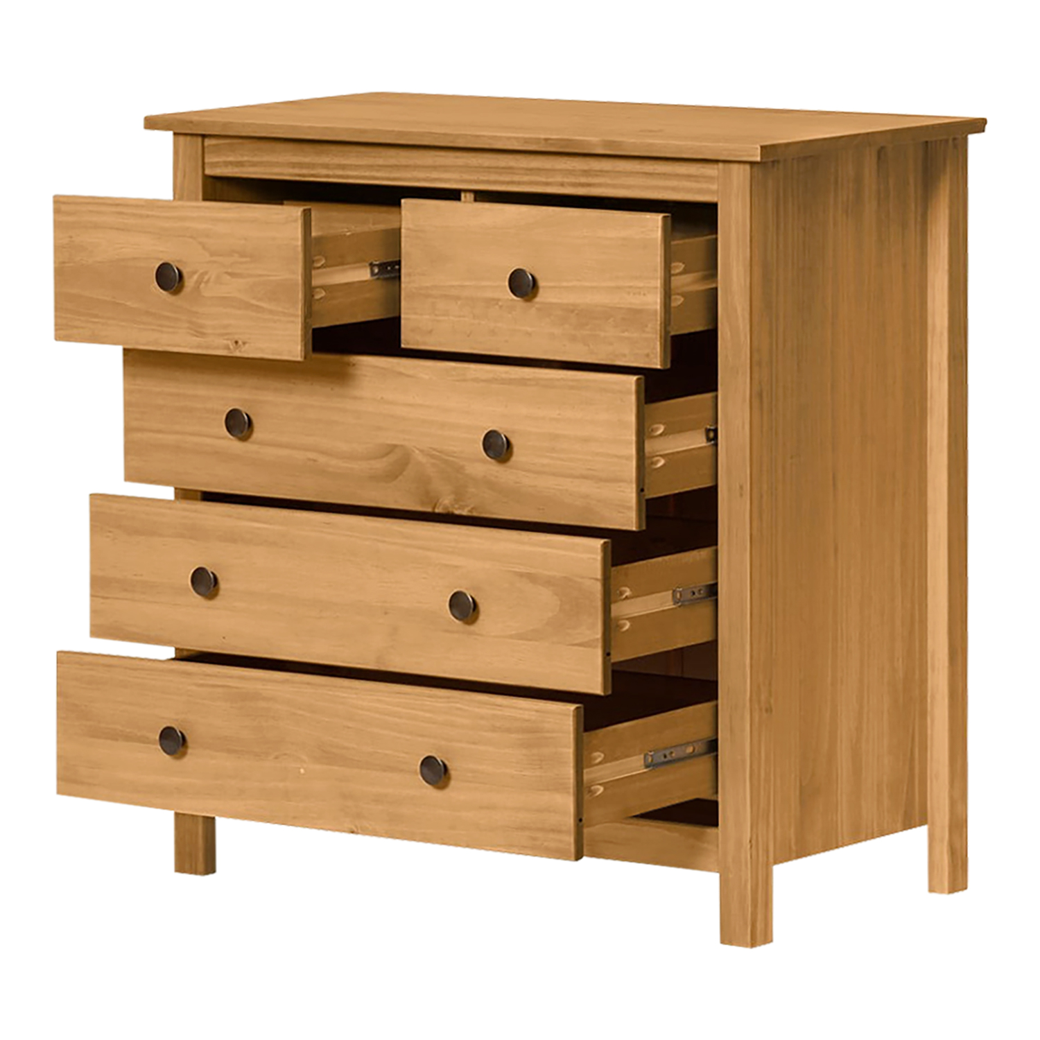 Каждая комната, обставленная мебелью из вощеной сосны медового оттенка, дополнена практичным местом для хранения вещей - комодом с двумя маленькими и тремя большими ящиками того же цвета. Именно такой комод мы предлагаем в серии TORINO. В каждом из небольших ящиков можно разместить множество мелких предметов. В больших ящиках можно разместить и более крупные предметы. Для размещения всего, что просто не помещается в ящик, можно использовать верхнюю часть комода, которую можно украсить декоративными элементами, фотографиями или цветами.