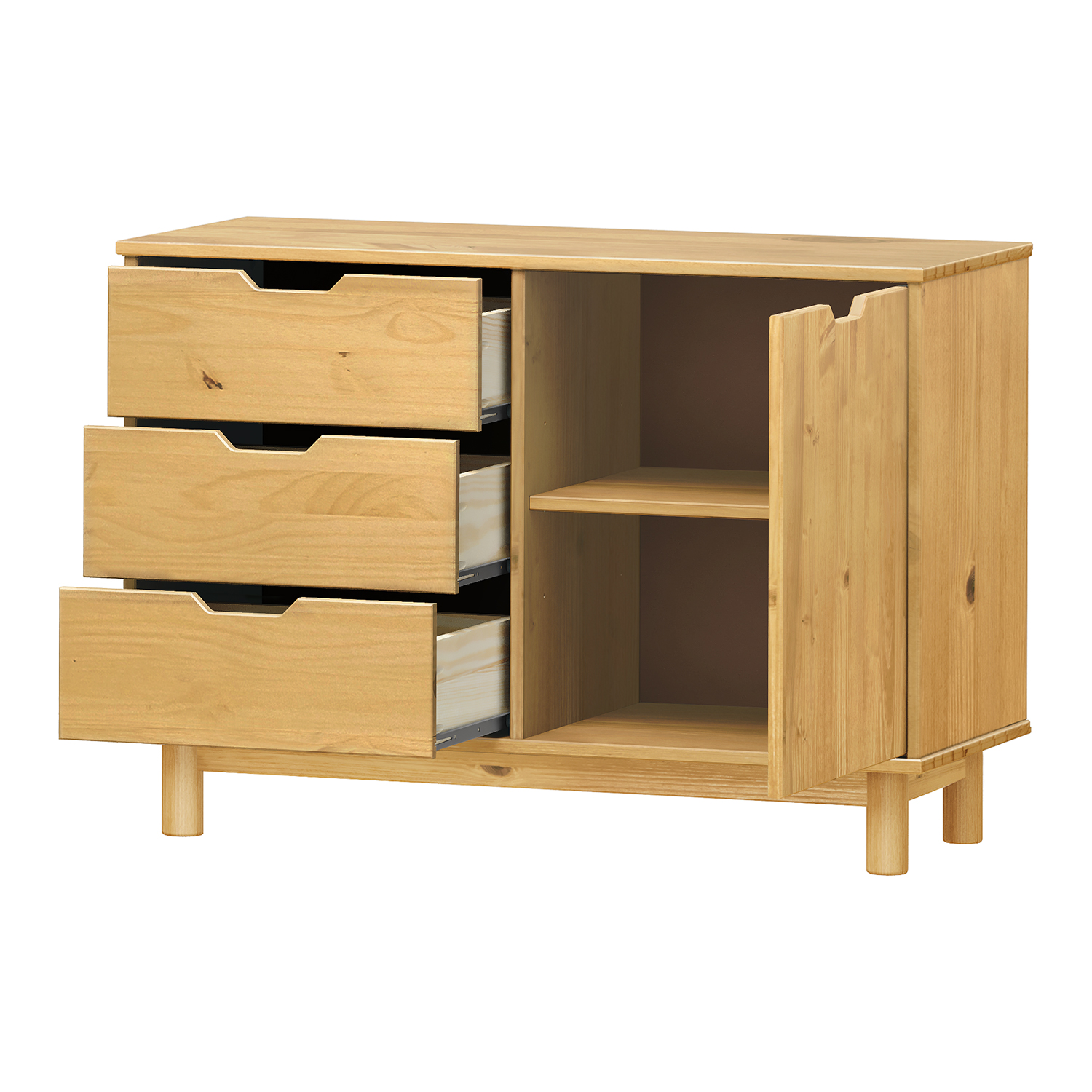 Код продукта: 32431Vmateriál masiv borovice, lakované provedení 3 zásuvky s kovovými pojezdy, 1 dvířka, 1 police