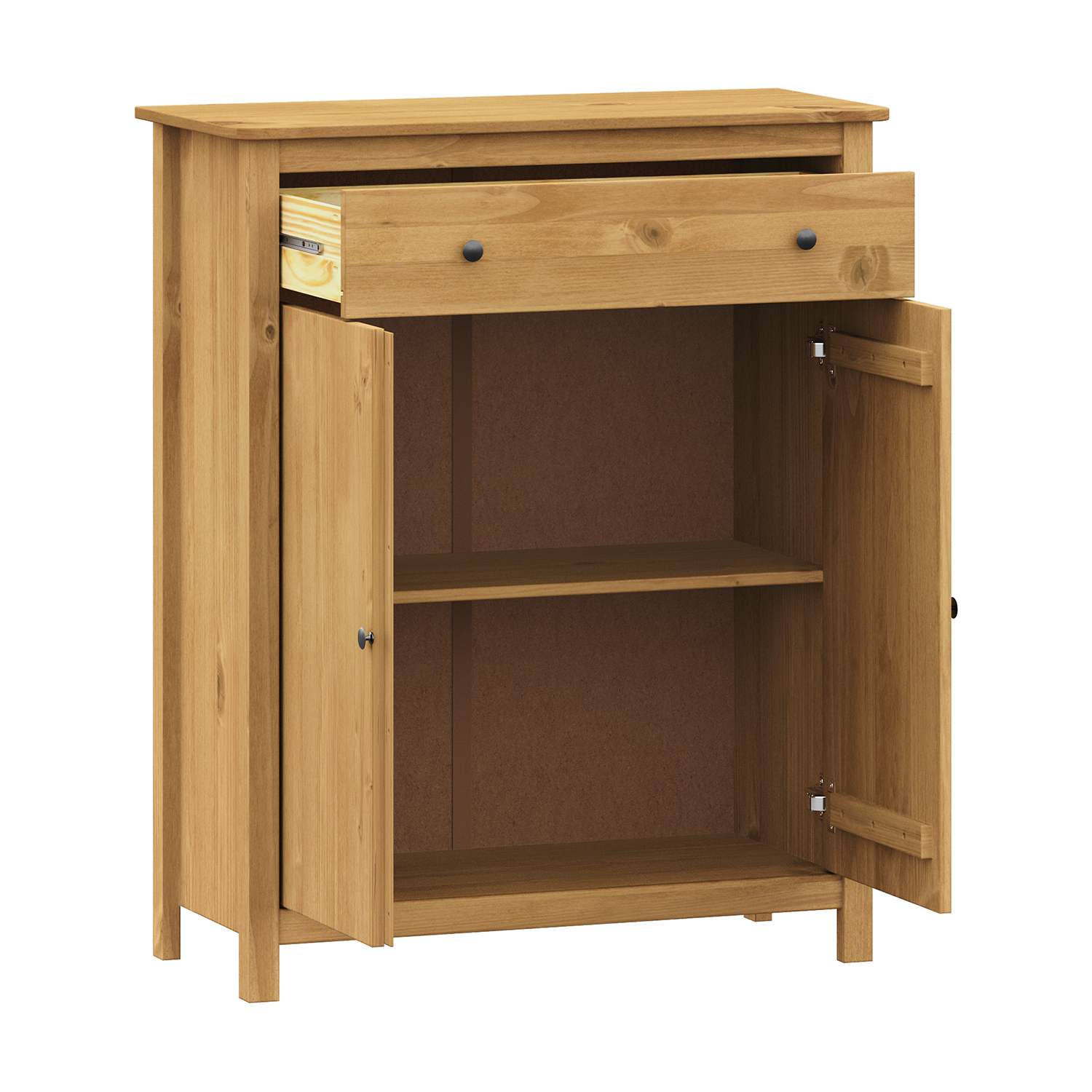 Код продукта: 8091Vmateriál masiv borovice voskovaná v medovém odstínu kovové úchytky v barevném provedení černěná mosaz 2 zásuvky s kovovými pojezdy, 2 plné dveře, 1 police vhodný doplněk nástavec 8096V