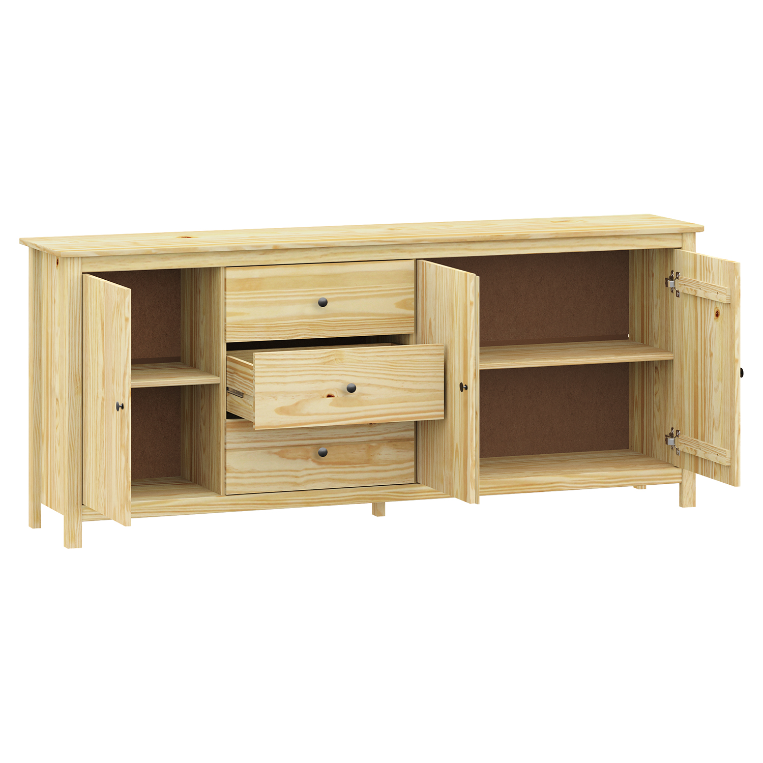Код продукта: 8078Kmateriál masiv borovice, lakované provedení kovové úchytky v barevném provedení černěná mosaz 3 dvířka a 2 zásuvky s kovovými pojezdy