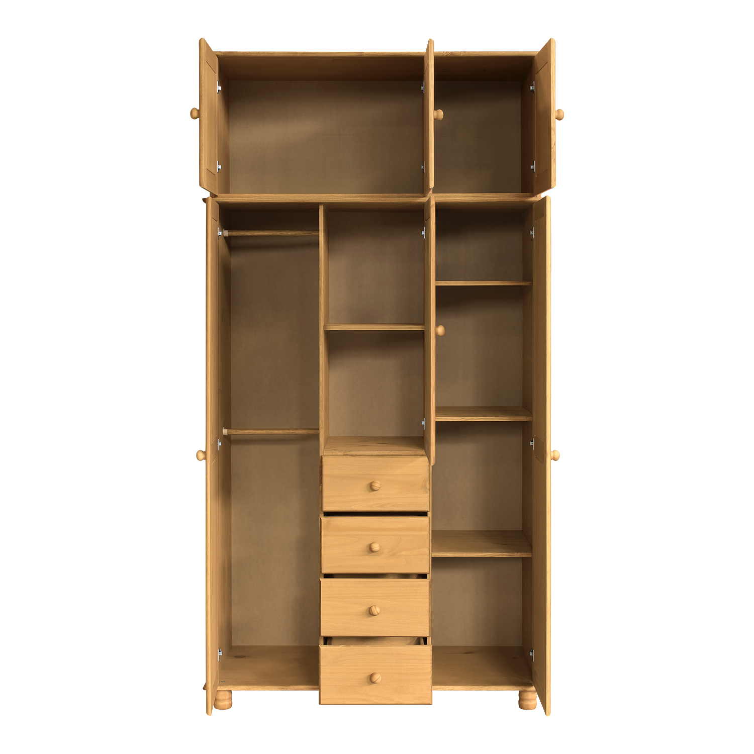 Dopřejte svému interiéru kouzlo rustikální elegance s třídveřovým nástavcem v provedení voskovaného borovicového dřeva. Tento stylový nástavec je nejen praktickým, ale i estetickým doplňkem, který dokonale zapadne do každého interiéru inspirovaného přírodou. Voskovaný povrch v přírodním odstínu zvýrazňuje krásu dřevěné textury a dodává nábytku jemný, příjemný vzhled. Nástavec nabízí troje praktická dvířka, za nimiž se skrývá prostorný úložný prostor, ideální pro ukládání ložního prádla, sezónního oblečení nebo jiných potřebných věcí. Je perfektním řešením pro všechny, kteří potřebují více úložného místa, aniž by museli zbytečně zmenšovat volný prostor v místnosti. Skvěle se hodí ke skříním 8851V a 8863V, díky čemuž snadno vytvoříte jednotný a harmonický interiér. Tento nástavec je ztělesněním kombinace funkčnosti a designu – ideální volba pro ty, kteří ocení kvalitu masivního dřeva a chtějí svému domovu dodat útulnou atmosféru plnou tepla a tradice.