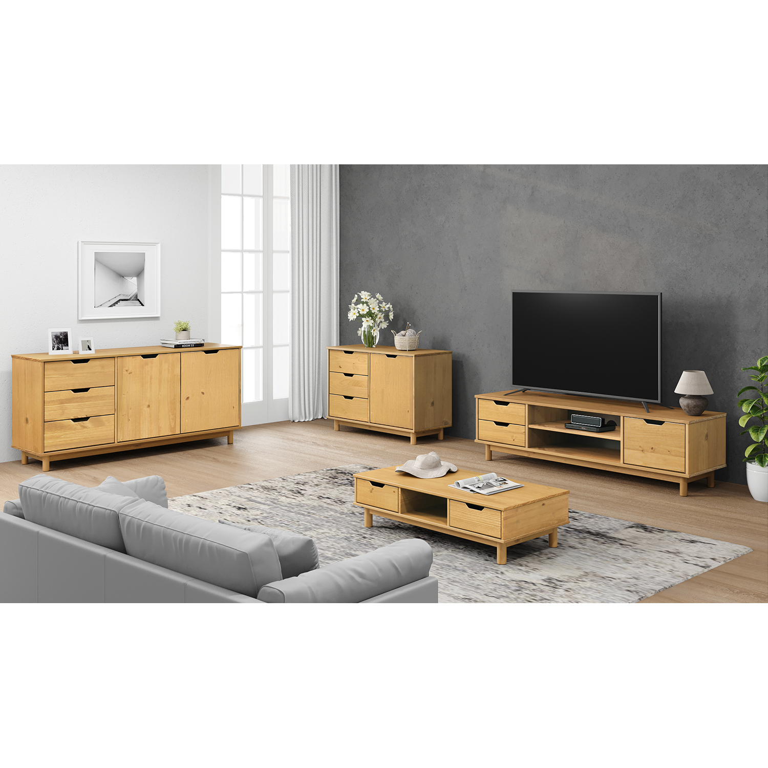 Код продукта: 32431Bmateriál masiv borovice voskovaná v medovém odstínu 3 zásuvky s kovovými pojezdy, 2 dvířka, 1 police