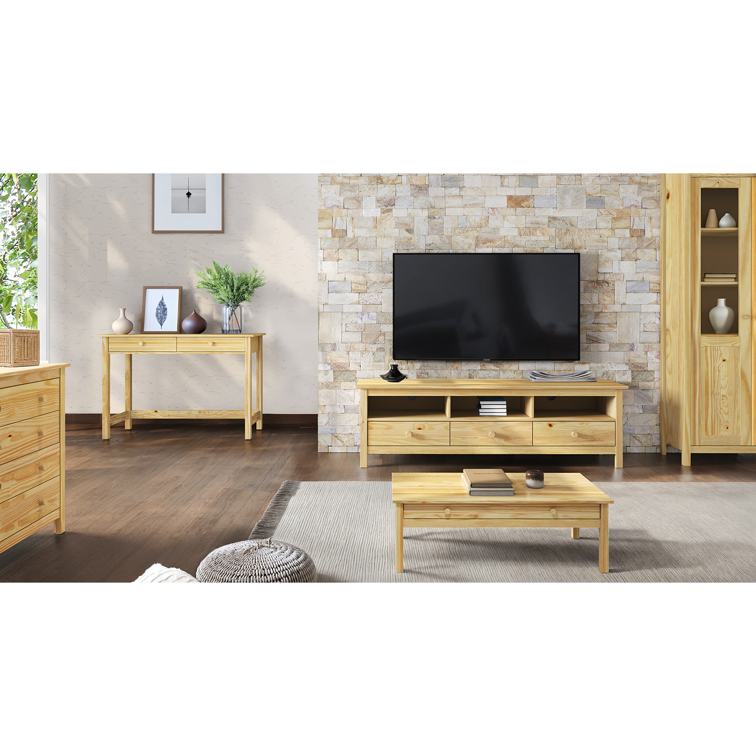 Код продукта: 8072массив сосны, лакированный дизайн 3 дверцы и 2 ящика с металлическими направляющими