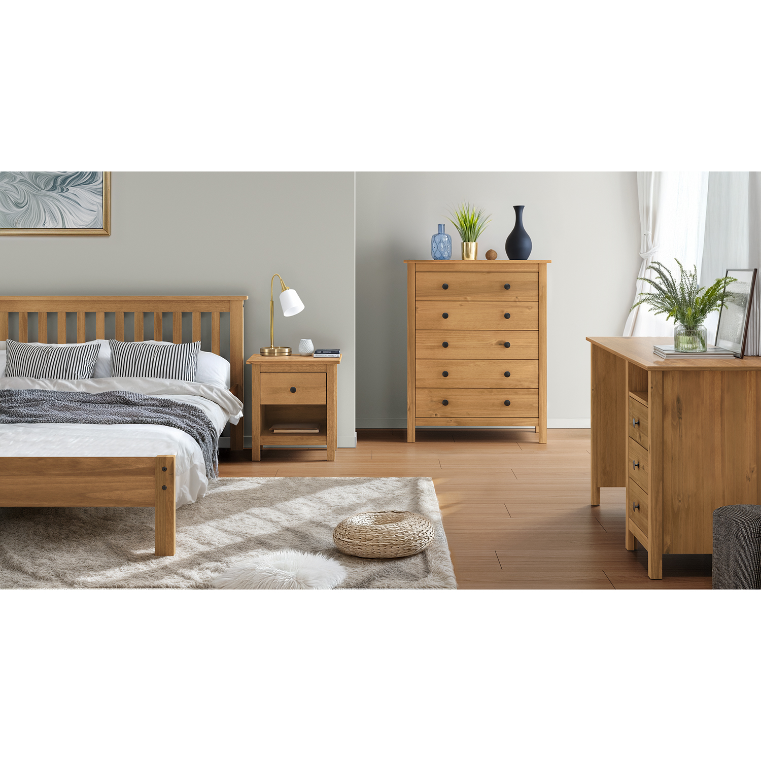 Код продукта: 8099VМатериал - массив сосны, покрытый воском медового оттенка, металлические ручки 2 малых и 3 больших выдвижных ящика с металлическими полозьями