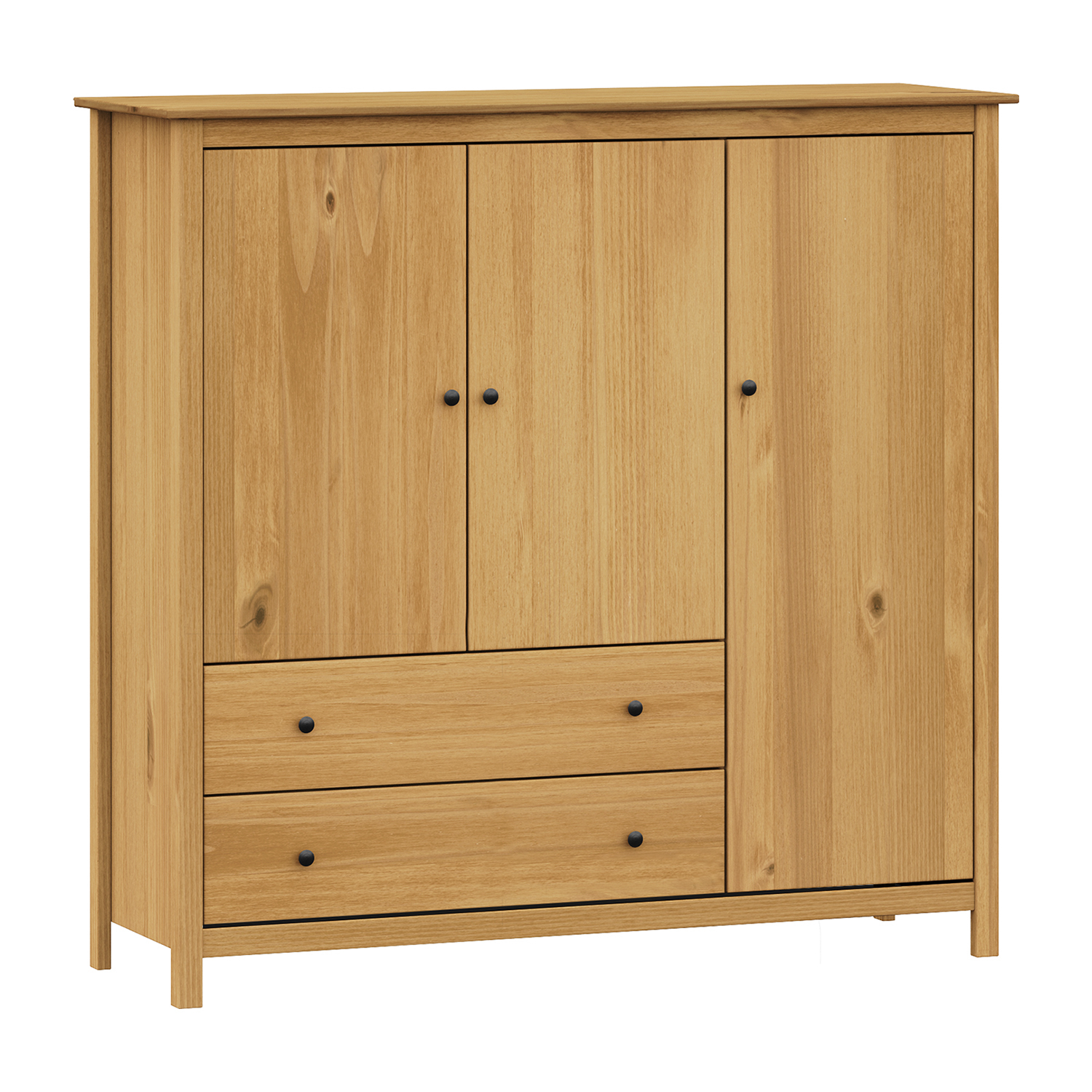 Код продукта: 8061Vmateriál masiv borovice voskovaná v medovém odstínu kovové úchytky v barevném provedení černěná mosaz 3 zásuvky s kovovými pojezdy, 3 plné dveře, 2 police maximální nosnosti uvedeny v návodu k montáži