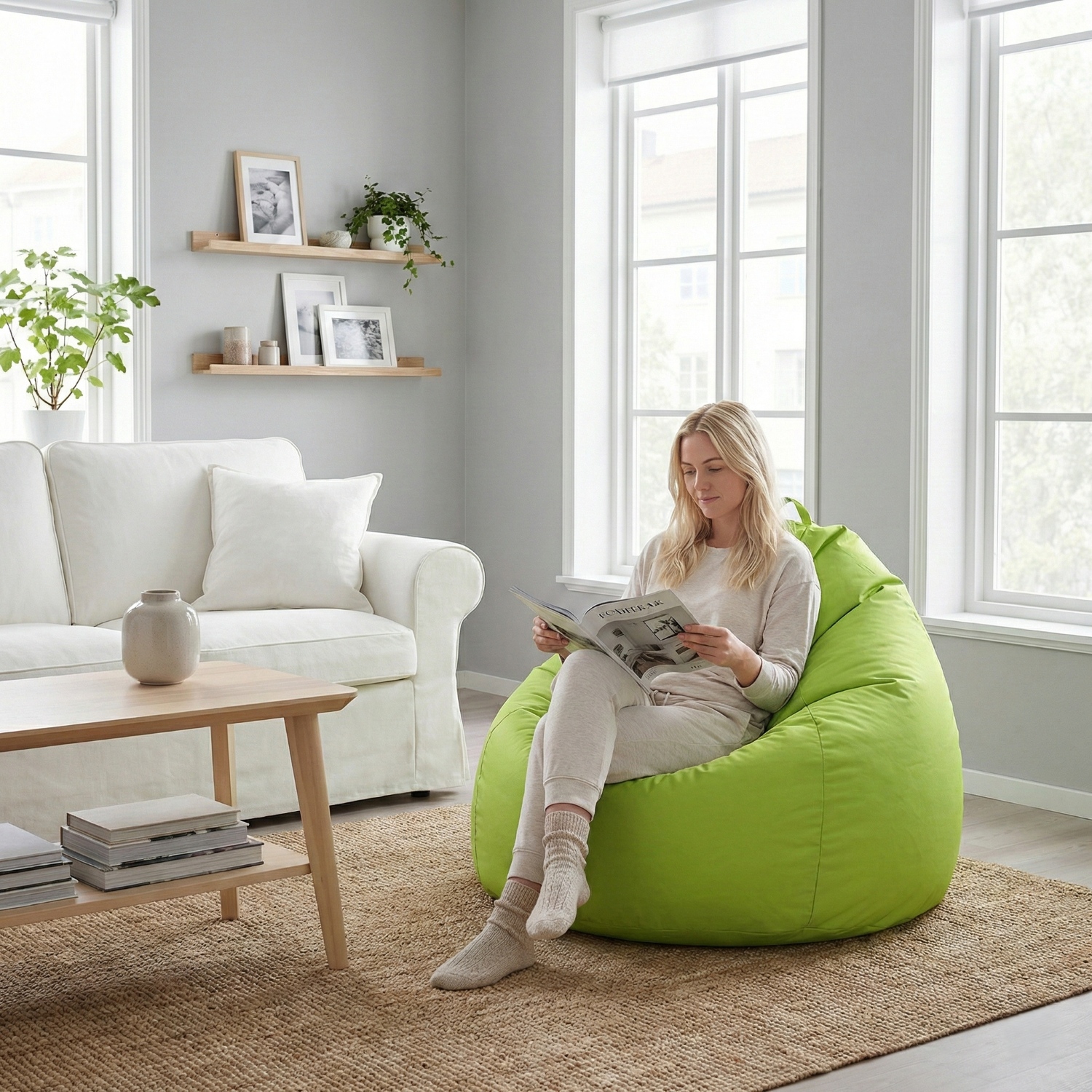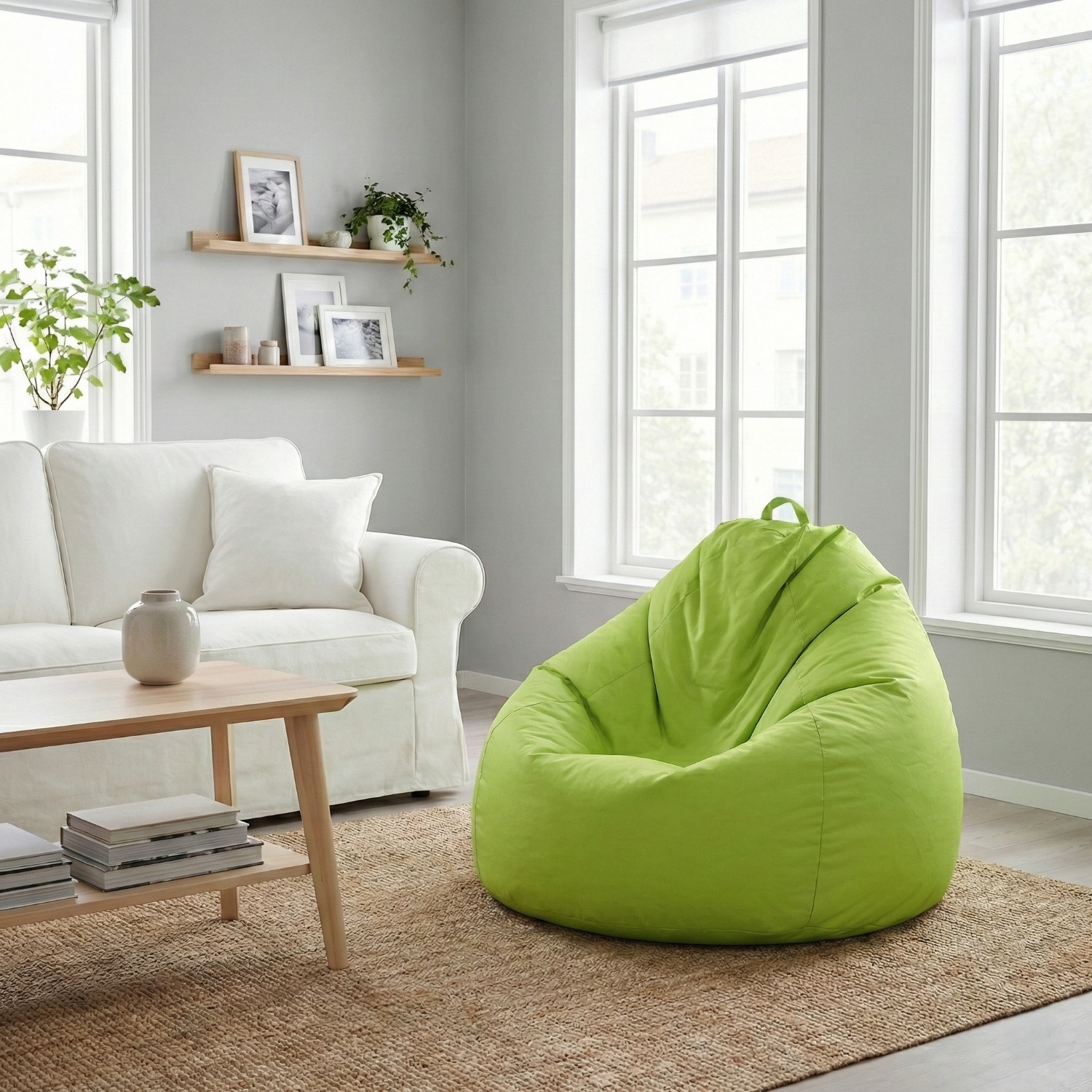 грушевидная сумка-сиденье нейлоновый чехол, цвет светло-зеленый наполнен полистироловыми шариками, объем наполнения 150 л застежка-молния, наполнение можно пополнять или снимать цена с наполнителем