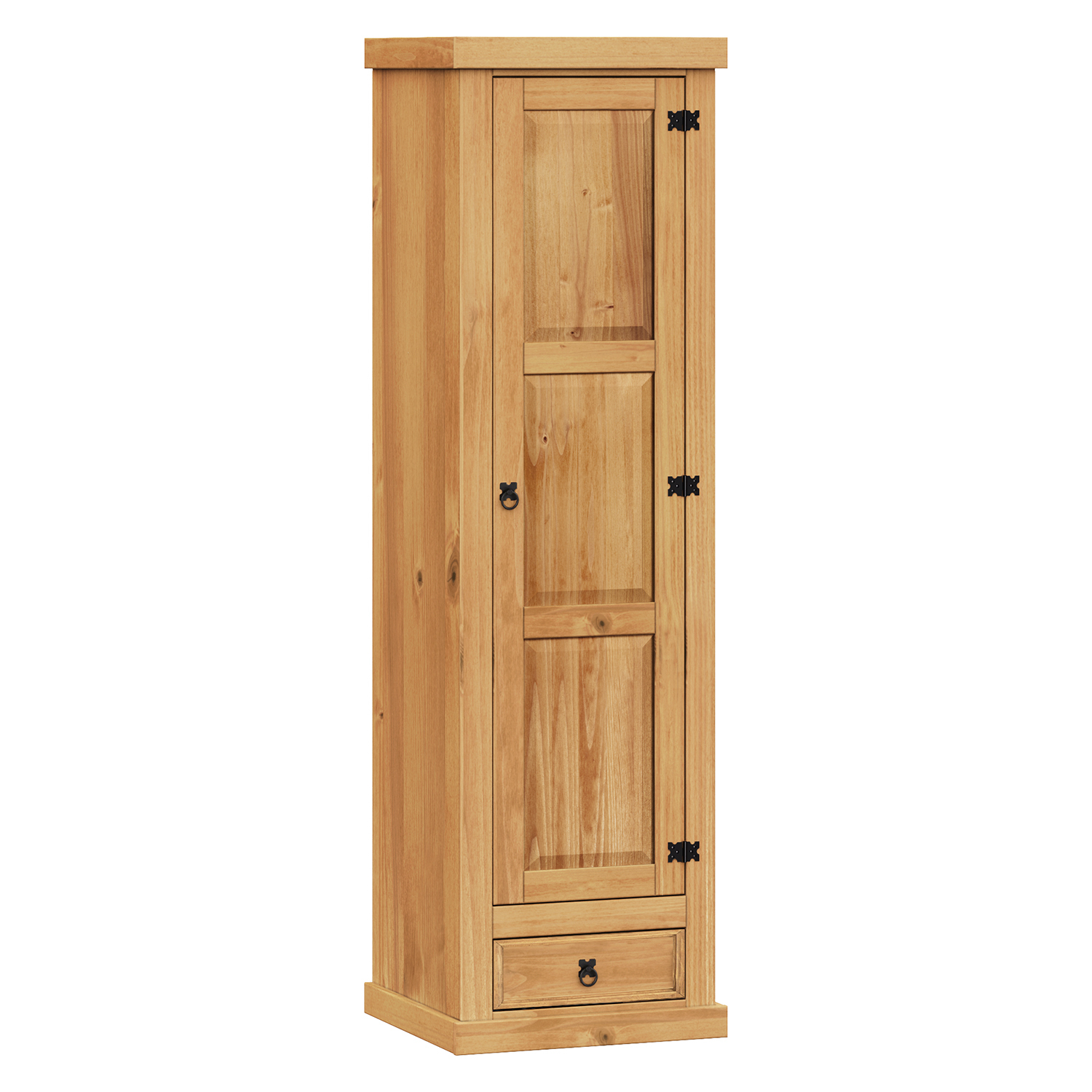 Код продукта: 16953материал массив сосны, обработанный воском медового оттенка пространство разделено в соотношении 2:1 Широкая часть со штангой для одежды и полкой для головных уборов, широкий выдвижной ящик в нижней части более узкая часть - 3 полки, из которых 2 регулируемые металлические декоративные ручки часть комплекта Corona