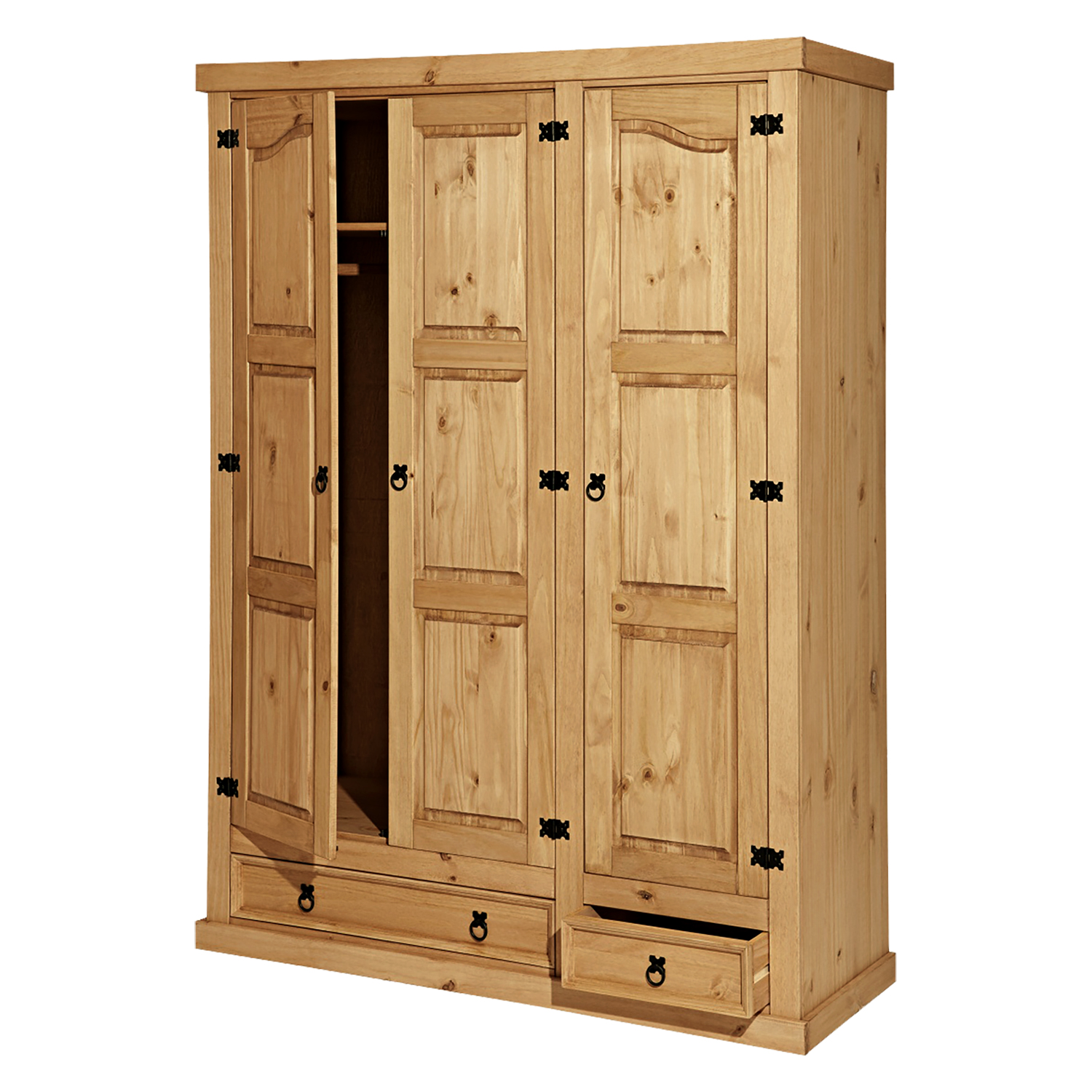 материал из массива сосны вощеный в медовом оттенкепространство разделено в пропорции 2:1:2в обеих более широких частях штанга и полка для шляп, средняя более узкая часть 3 nbsp;переменная полкавнизу 2 больших и 1 маленький ящик, металлические декоративные ручки входят в комплект Corona
