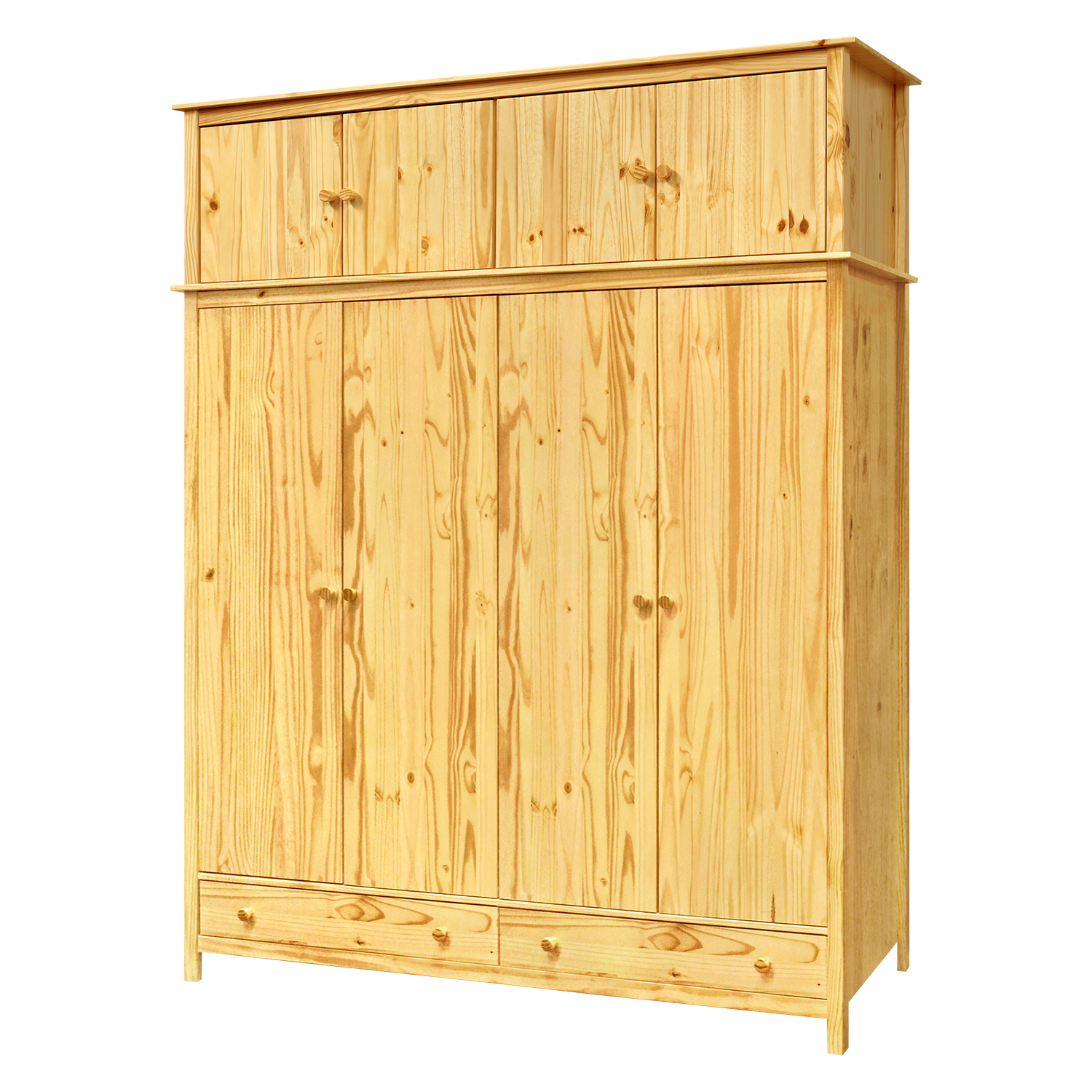 Красивый и вместительный шкаф - мечта любого, у кого много одежды. Четырехдверный шкаф TORINO предлагает вам достаточно места для хранения верхней одежды. Он выполнен в классическом дизайне из массива сосны. Пространство разделено на половины. В левой половине - штанга для одежды и полка для головных уборов. В правой половине - 3 полки. В нижней части расположены 2 выдвижных ящика с металлическими полозьями, в которых можно хранить аксессуары или нижнее белье. Остальную одежду можно разложить по полкам, а пиджаки, платья или рубашки повесить на вешалки. Благодаря своему внешнему виду он прекрасно впишется в ваш коттедж или домик. Впрочем, он может порадовать и в современном доме.