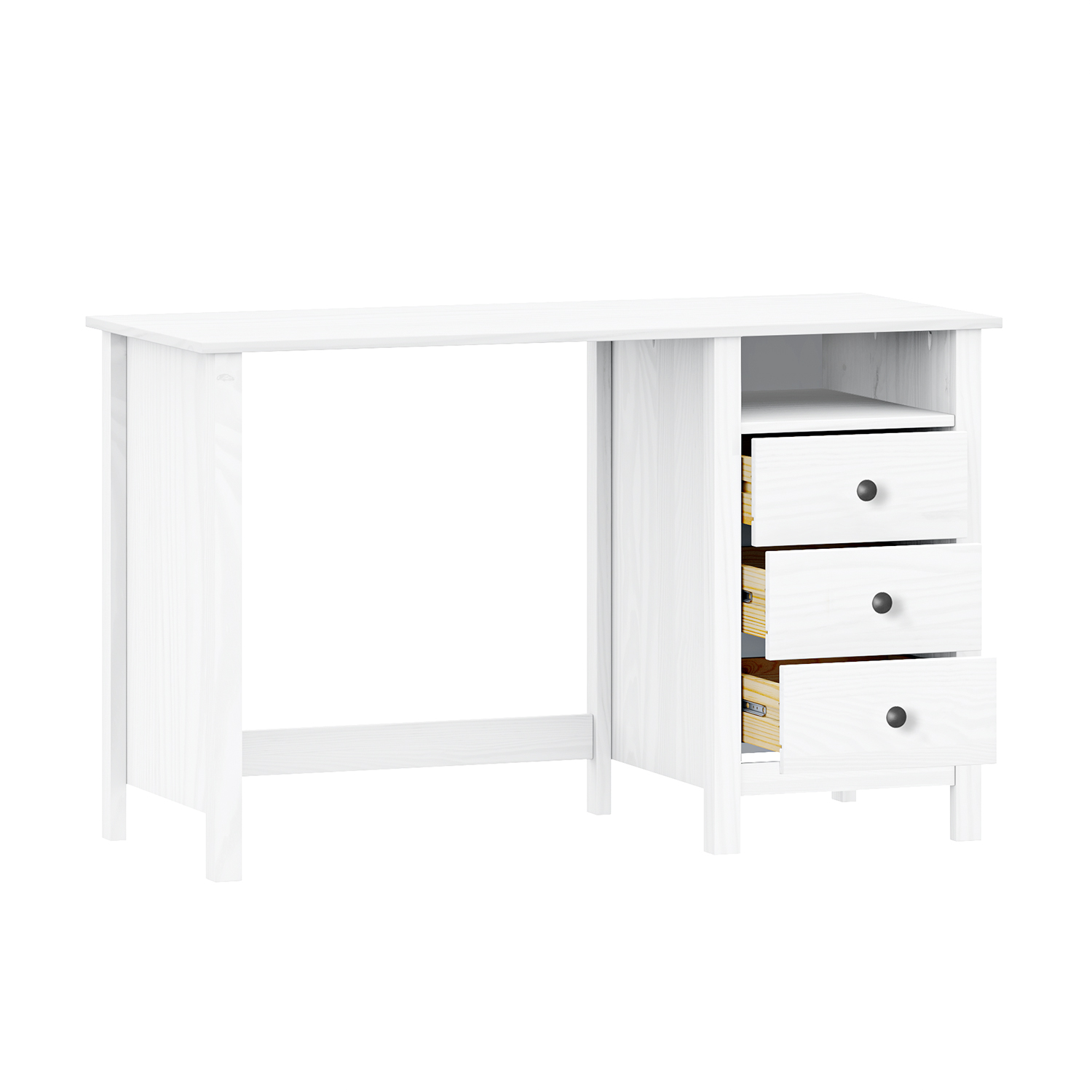 Код продукта: 9130BKматериал массив сосны, цвет белый лак металлические ручки три выдвижных ящика с металлическими полозьями